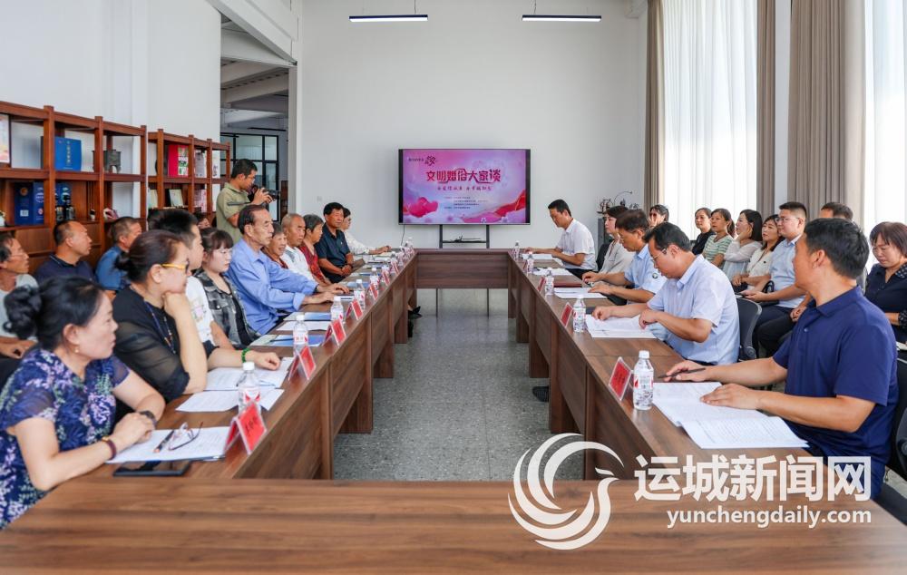 在全国上下深入学习宣传贯彻党的二十届三中全会精神之际和传统节日“七夕”到来之际,由运城市委宣传部、运城市文明办、运城日报社、运城市新时代文明实践指导中心主办,万荣县委宣传部协办的“我们的节日·七夕”文明婚俗大家谈座谈会在万荣县高村镇乌停村乡邻中心举办,“钻石婚”代表、“金婚”代表、“最美红娘”代表、青年情侣代表、媒体情感专栏记者以及“文明婚俗典型案例”代表等共聚一堂,讲述文明婚俗故事,提出移风易俗建议,合力推动全市乡风文明建设走深走实。