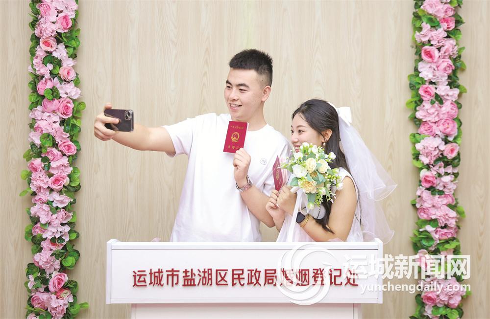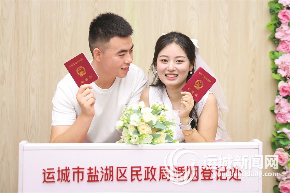 运城晚报讯(记者 陶登肖)“愿有岁月可回首,且以深情共白头。”8月10日星期六,正值七夕,是年轻人心目中有纪念意义的办理结婚登记的好日子。为回应群众期盼,盐湖区民政局婚姻登记处当天正常办理结婚登记业务,为127对新人颁发结婚证。