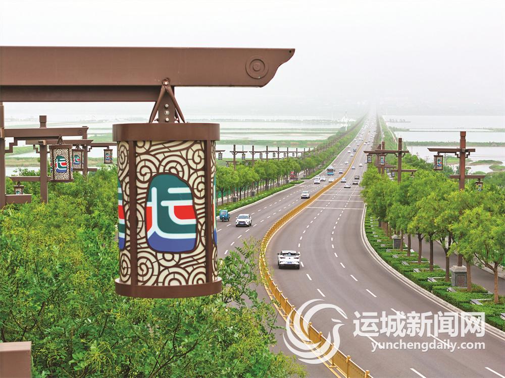 提起路灯,少不了最出圈的“006号”灯杆。假期,不少外地游客慕名来运旅游,位于解放南路(跨湖段)东侧的006号灯杆,更是成为众多市民和游客的“心头好”,被大家称为“盐湖拍照最出片的地方”。抬眼望去,金黄色的仿古灯栩栩如生,彩色的“运”字在正中,海浪元素装点灯身,甚是亮眼,契合了运城盐池的文化,也寓意着大运之城、好运连连。