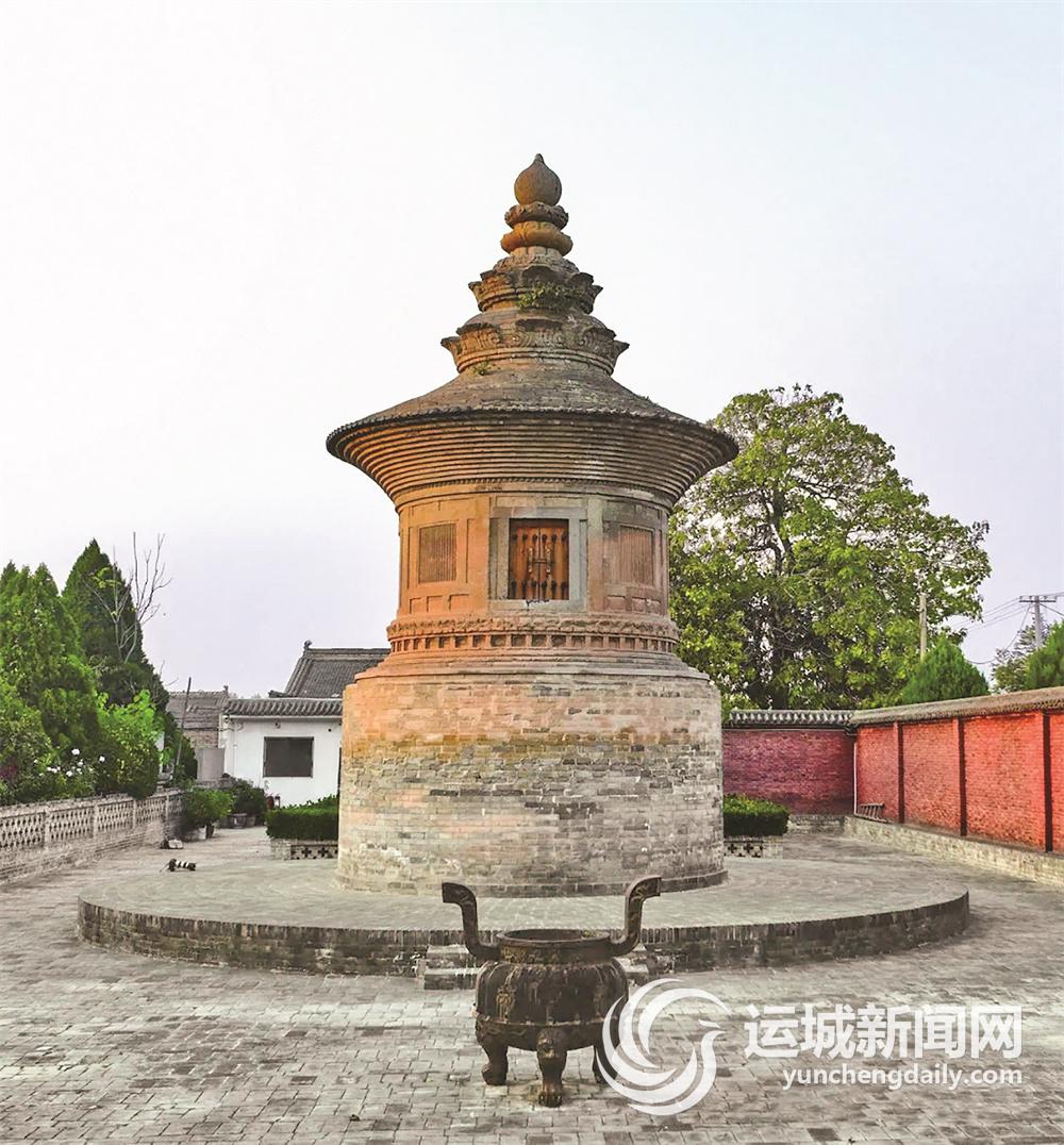 泛舟禅师塔位于盐湖区寺北村,历经千年的亭阁式名塔,建造于唐贞元年间。该塔坐北朝南,圆形单层,通体砖砌,占地约26平方米,通高10米,由塔基、塔身、塔刹三部分组成,每部分高度约占整体建筑的三分之一。
