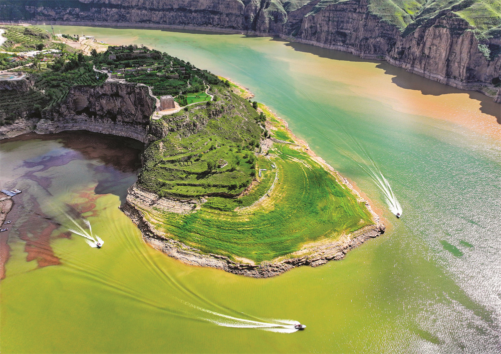 这是8月12日拍摄的黄河老牛湾风光(无人机照片)。