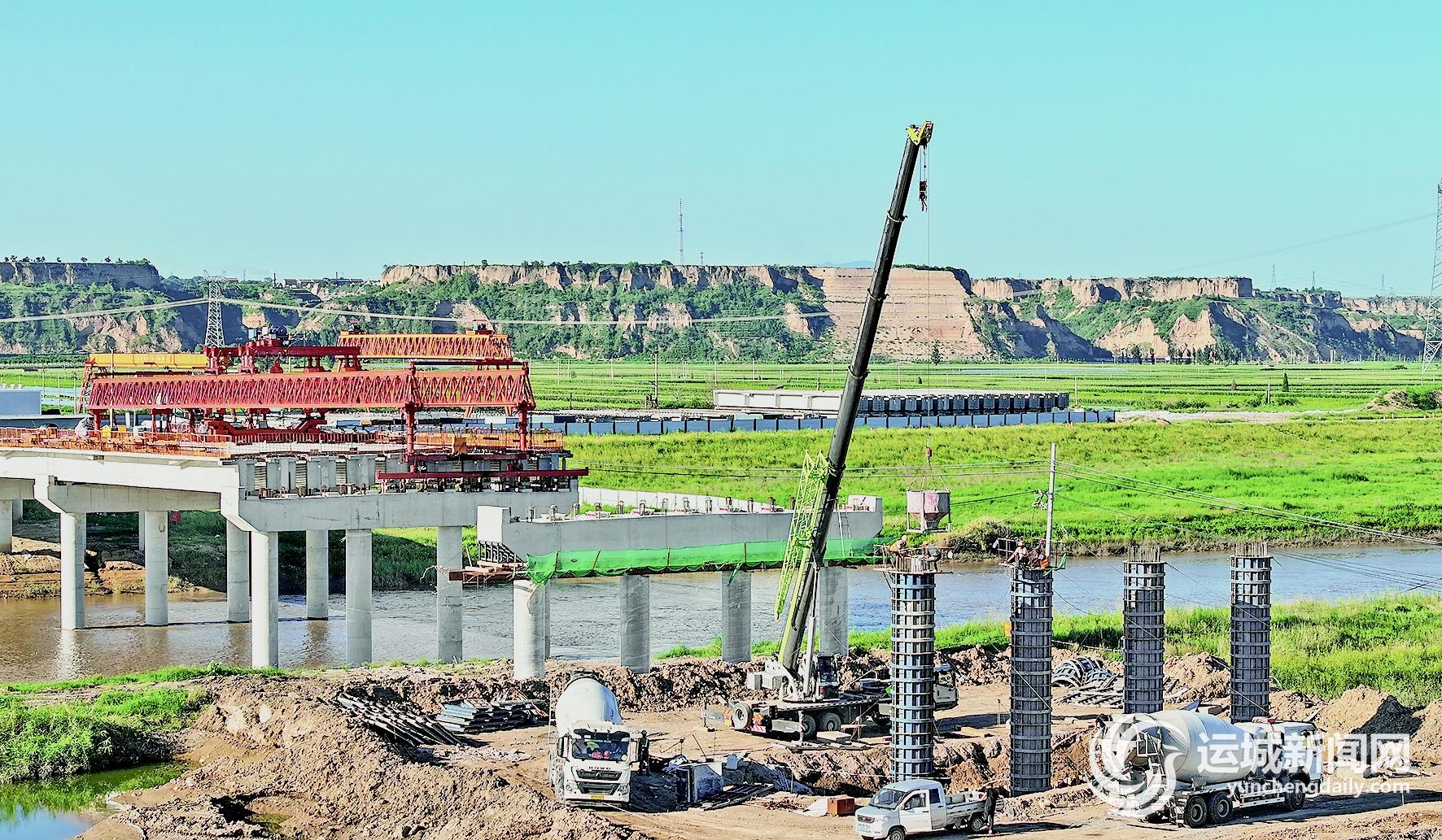8月11日,工人在稷山县云仁线汾河大桥改建工程项目工地加紧施工。该项目建成后,将有效提升汾河大桥应对洪峰过境的能力。 特约摄影 栗卢建 摄