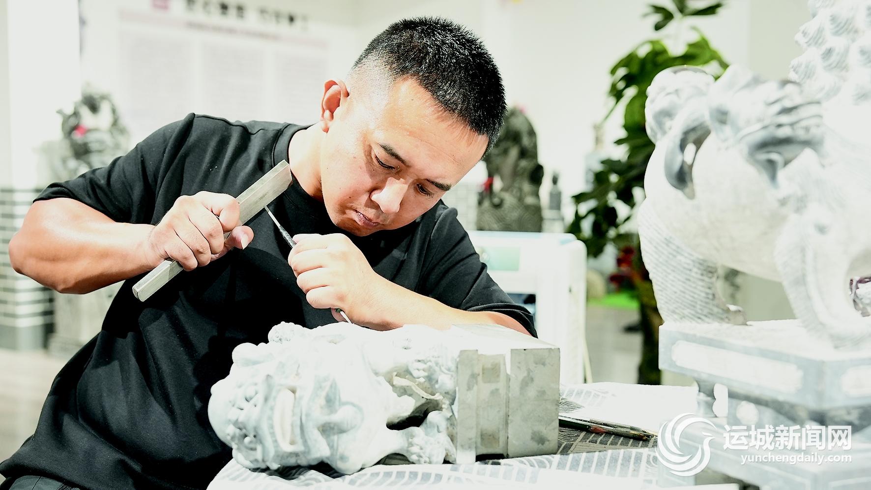 新绛县北张镇西庄村自古就有“西庄家,石头汉”之称,该村的石雕史,最早可追溯到隋代,兴盛于明清。坐落于新绛县北张镇西庄村的玉顺石雕是新绛石雕文化中家族式传承的一个代表。石雕师傅一锥一锤精心雕刻,用粗刀确定各个部位,用宽刀、细刀对各个角度、各处细节作进一步细刻,圆雕、浮雕、线雕、平雕四项雕刻技艺交替或综合运用,使得作品每个线条流畅,整体造型更加逼真。记者 李盛世 摄
