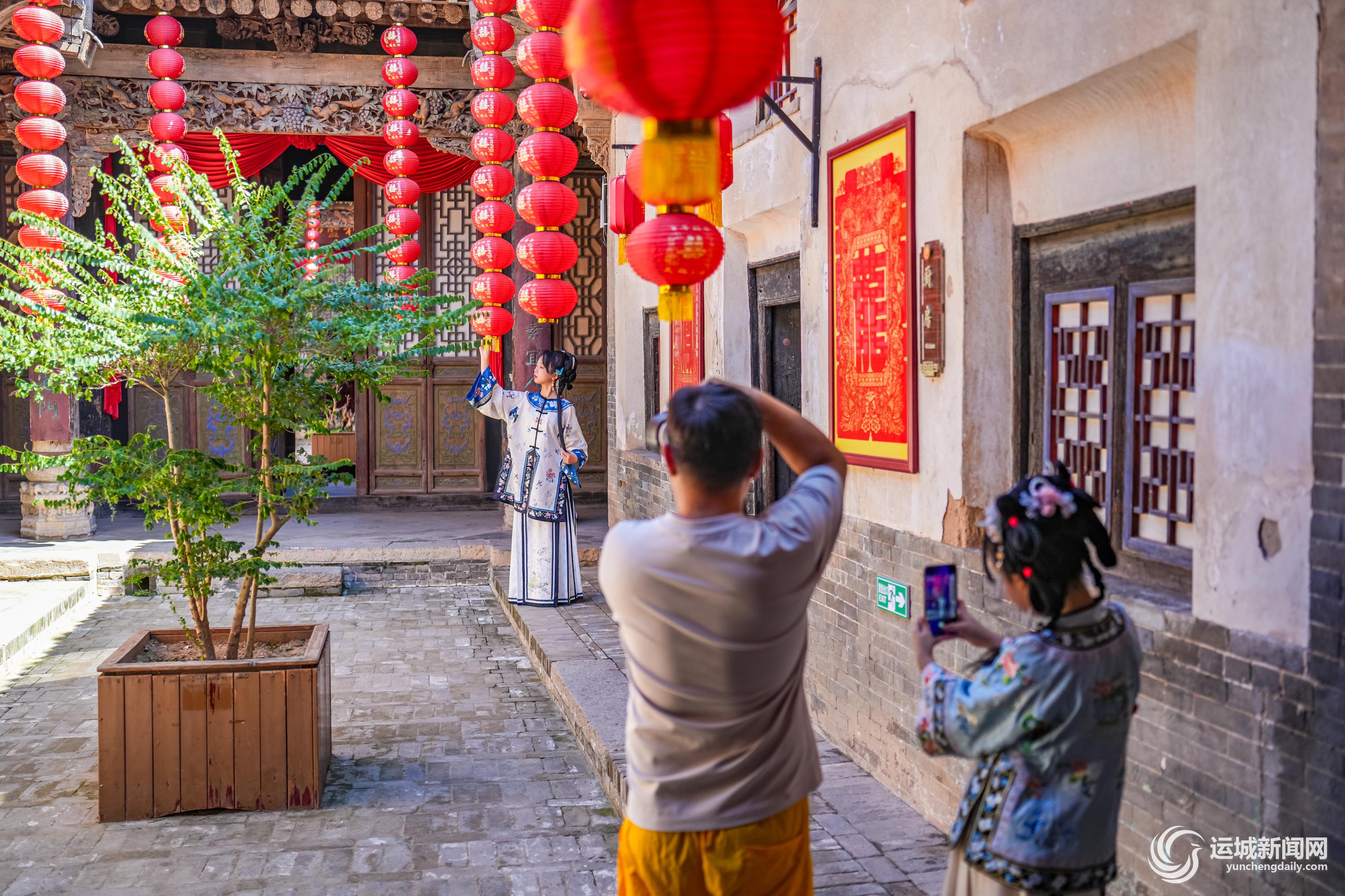 “五一”假期以来,万荣李家大院景区换装体验持续爆火,热度不减。该景区将紧抓爆点,通过举办旅拍大赛等活动,壮大旅拍产业,探索流量密码,保持景区热度,真正变“网红”为“长红”。图为8月14日,游客在李家大院景区拍照打卡。 本报记者 陈方斌 摄