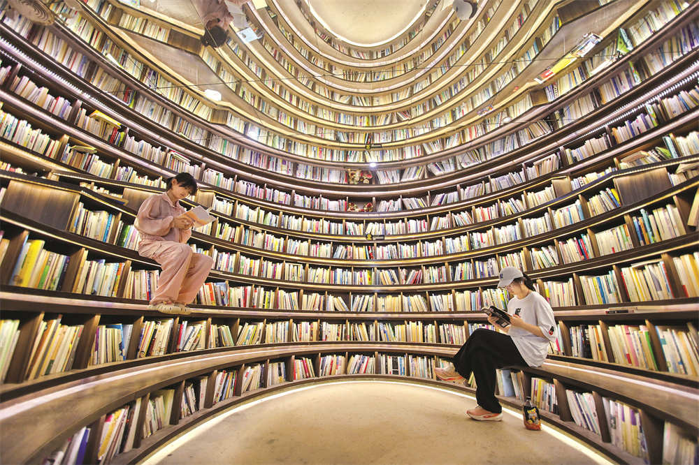 8月14日,在日照市海洋美学馆城市书房,市民在看书。