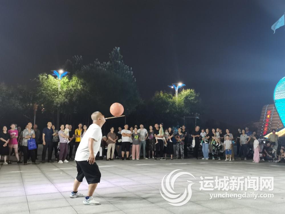 8月17日晚,中心城区体育公园,来自河南的一个杂技演出团在表演节目。
