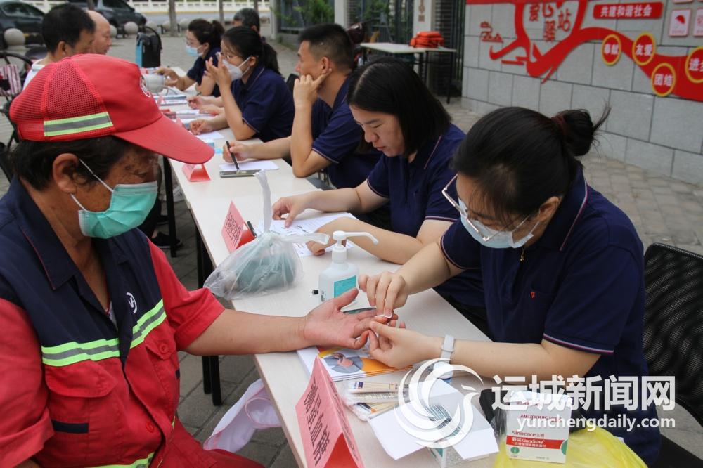 “血压高的时候是多少?平时在吃什么药?”8月17日,在中心城区禹都公园大门口,来自市中心医院的专家在为一名环卫工人问诊。当日,该院庆祝8·19中国医师节系列活动中的公益义诊活动顺利举行。