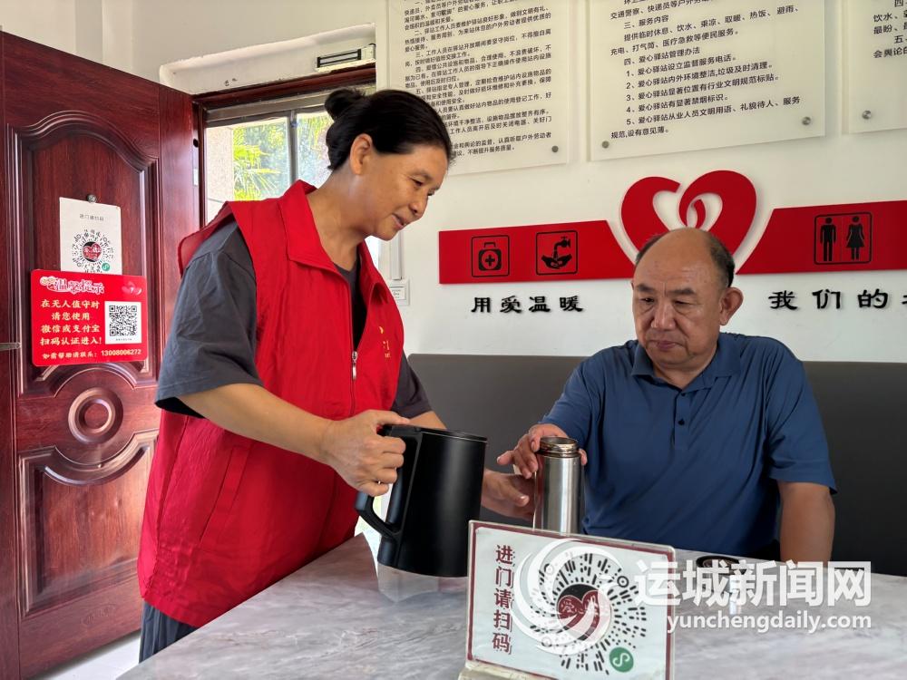 齐全的设施只是基础,最令人称赞的是驿站工作人员的温情服务,从点滴小事中可以探见。“您好,我给您倒杯温水吧,热水太烫了,好不好?”“现在温度很高,您可以在这里休息一下。”“里面有小药箱,给孩子贴个创可贴吧。”“这些水果是我从家里带来的,您可以尝尝。”……作为禹都公园爱心驿站(北门站)管理员之一,在同事和市民眼中,张彩琴是出了名的热情,不管是谁、不论在什么时间,只要走进驿站,她都会上前亲切地倒一杯热水、问一句冷暖。
