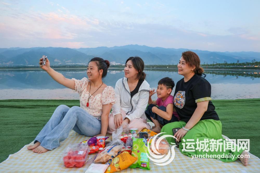 近期傍晚时分,众多市民选择在运城盐湖景区沿岸亲水平台的绿地上席地而坐,休闲纳凉。景区向公众开放以来,凭借其独特的区位优势,成为市民望山亲水的打卡新去处。