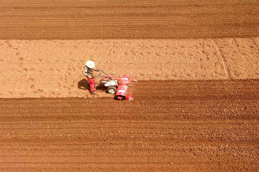 8月21日,农民在河南省济源市承留镇种子产业园整理土地。