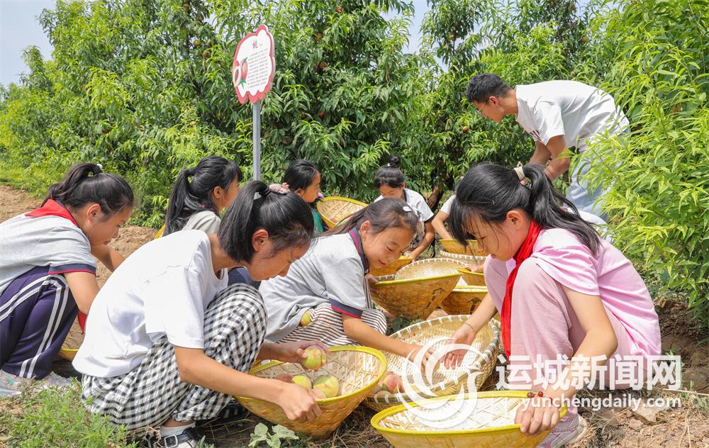 暑期里,闻喜县河底中心校西郭小学开展摘桃子劳动实践活动。