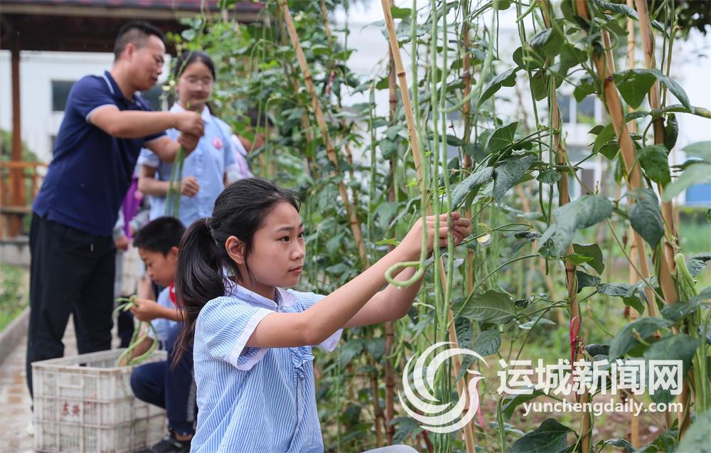 芮城县西陌中心小学在暑期里让学生体验蔬菜采摘。