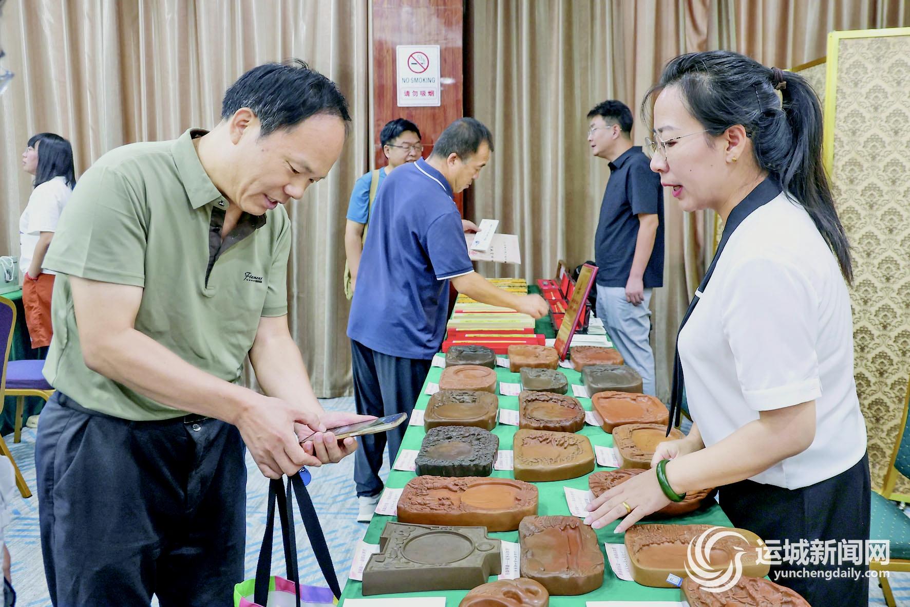 山西绛州澄泥砚研制有限公司高级技师张迎利介绍,此次他们带来了运城13县(市、区)“一县一砚”系列作品及获得联合国奖项的作品。尤其是“一县一砚”,前来了解自己家乡文化砚的人络绎不绝。自2010年开始,他们不断挖掘我市各自的历史、人文、政治、经济等亮点,针对其亮点设计制作特色文化砚,“我们也希望以砚台的形式,把这些文化、建筑等记录下来、传承下去,让更多人了解这一方砚台所承载的文化价值和意义。”她说。