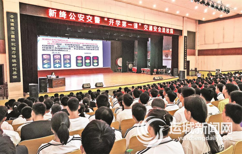 8月26日,新绛县公安局交警大队“开学第一课”交通安全进校园小分队民辅警在该县职业教育中心为新生作交通安全知识专题讲座。