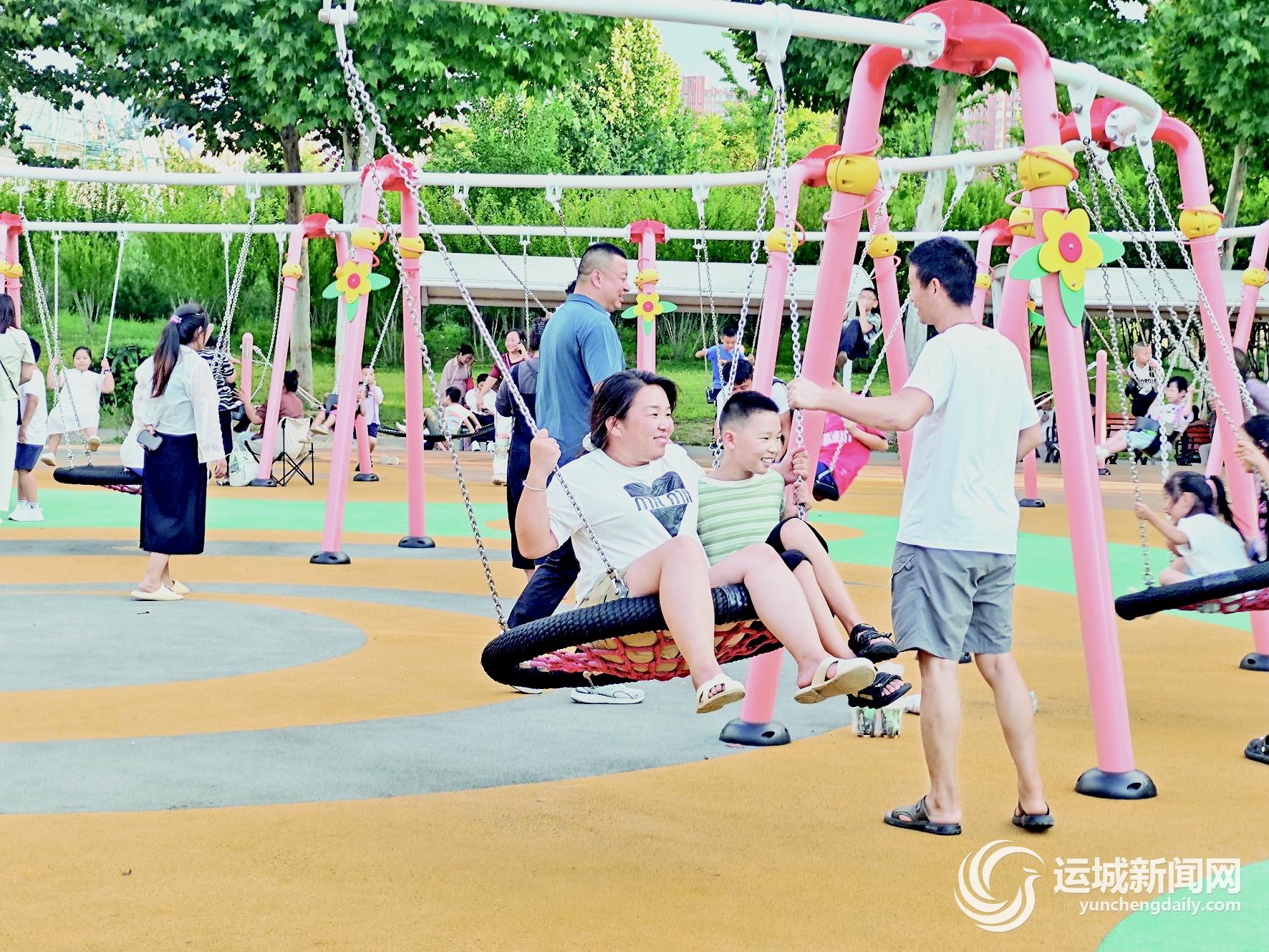 “孩子还小,正是玩的时候。多亏家门口有这样一个公园,孩子很喜欢这里的各种游乐设施,我几乎每天都带他过来玩。”8月26日晚上8时,在中心城区禹都公园的活力地球游乐区,正在带孩子游玩的市民朱女士说。