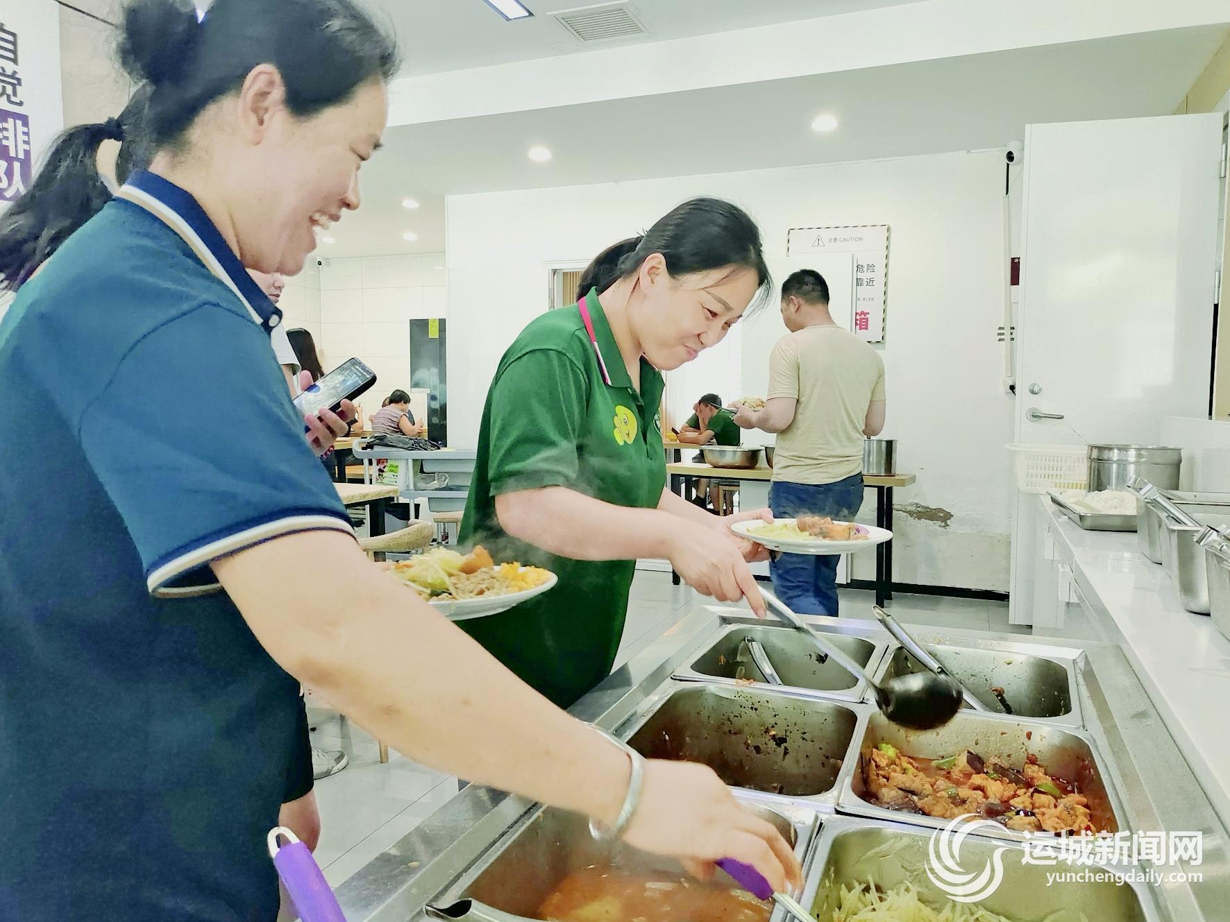 8月22日11时15分,盐湖区南城街道圣惠嘉园社区爱心食堂开饭了,10多道菜品及主食、汤品,供居民自助选择。
