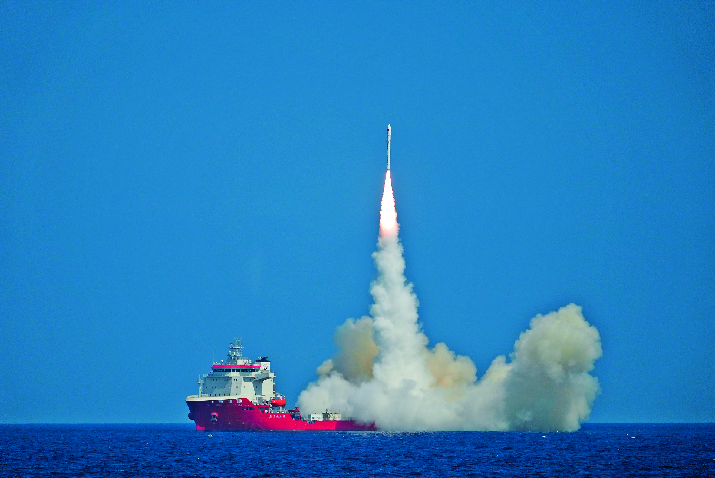 ▲8月29日13时22分,我国太原卫星发射中心在山东附近海域成功发射谷神星一号海射型遥三运载火箭,搭载发射的云遥一号15星-17星、吉天星A-03星、苏星一号01星、天辅高分二号卫星顺利进入预定轨道,飞行试验任务获得圆满成功。新华社发(冉芥 摄)