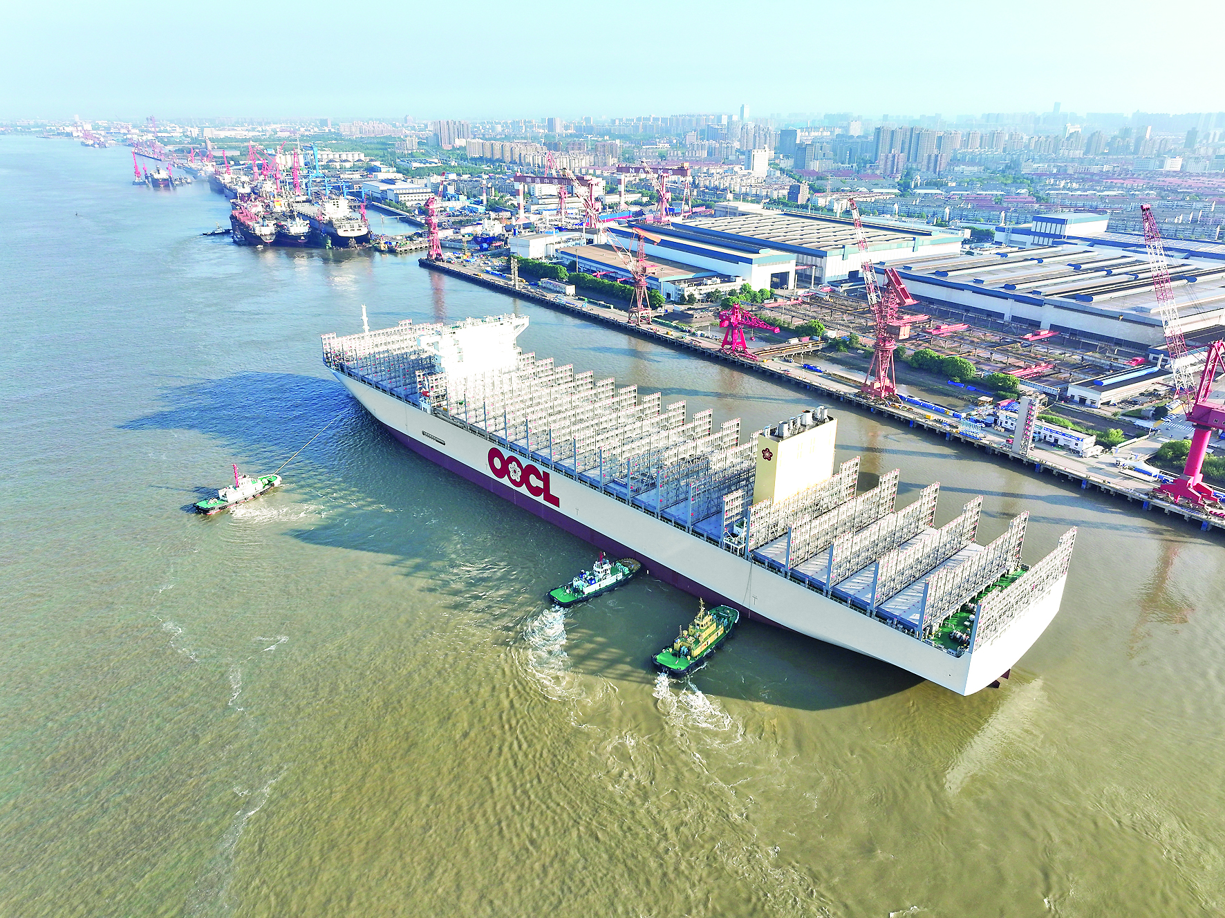 ▲8月30日,超大型集装箱船“东方葡萄牙”轮驶离码头。