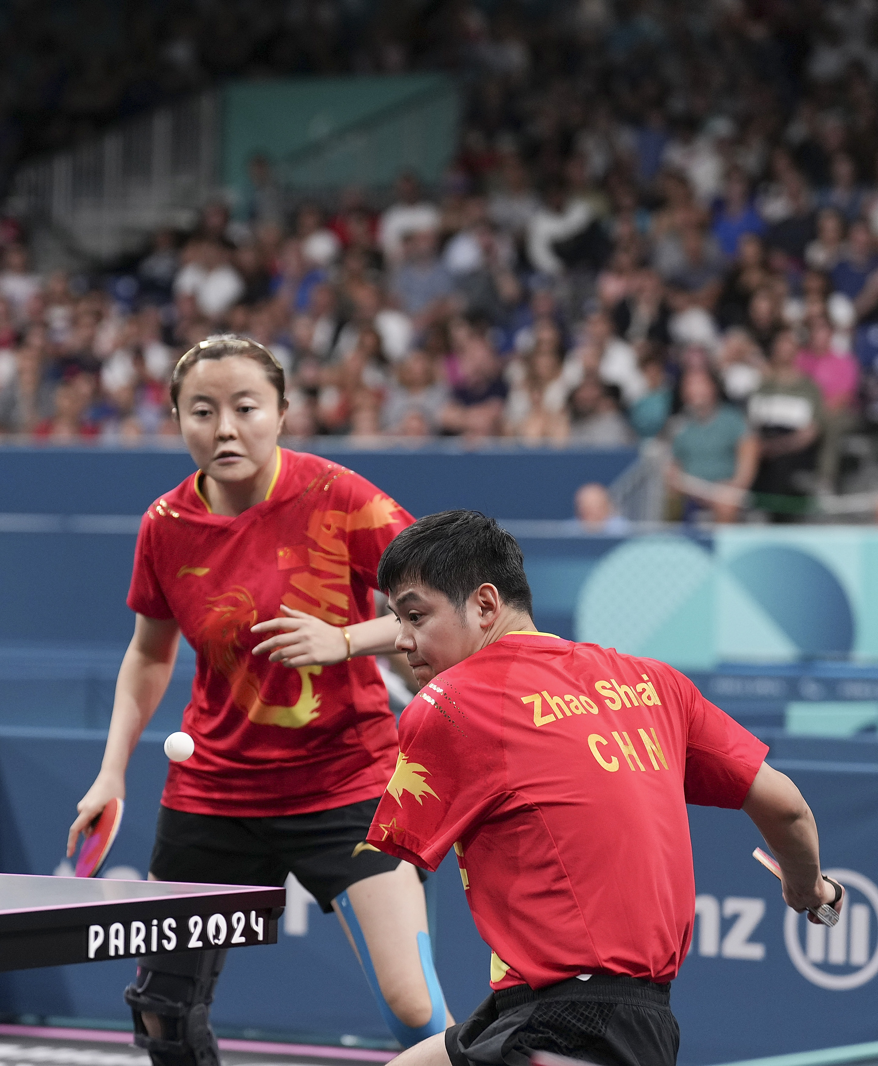 当日,在巴黎残奥会乒乓球混双17级决赛中,中国组合赵帅/茅经典3比0战胜中国组合彭伟楠/熊桂艳,获得冠军。