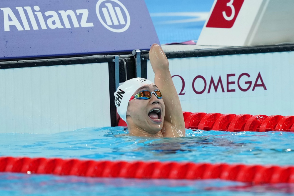 当日,在巴黎残奥会男子100米蛙泳SB6级决赛中,中国选手杨洪以1分18秒34的成绩获得冠军并打破残奥会纪录。新华社记者 张豪夫 摄