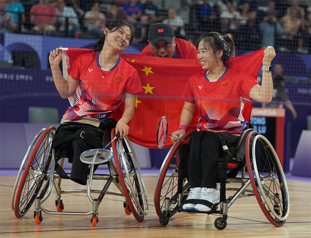 当日,在巴黎残奥会羽毛球女子双打WH1-WH2级决赛中,中国组合刘禹彤/尹梦璐以2比0战胜日本组合里见纱李奈/山崎悠麻,夺得金牌。