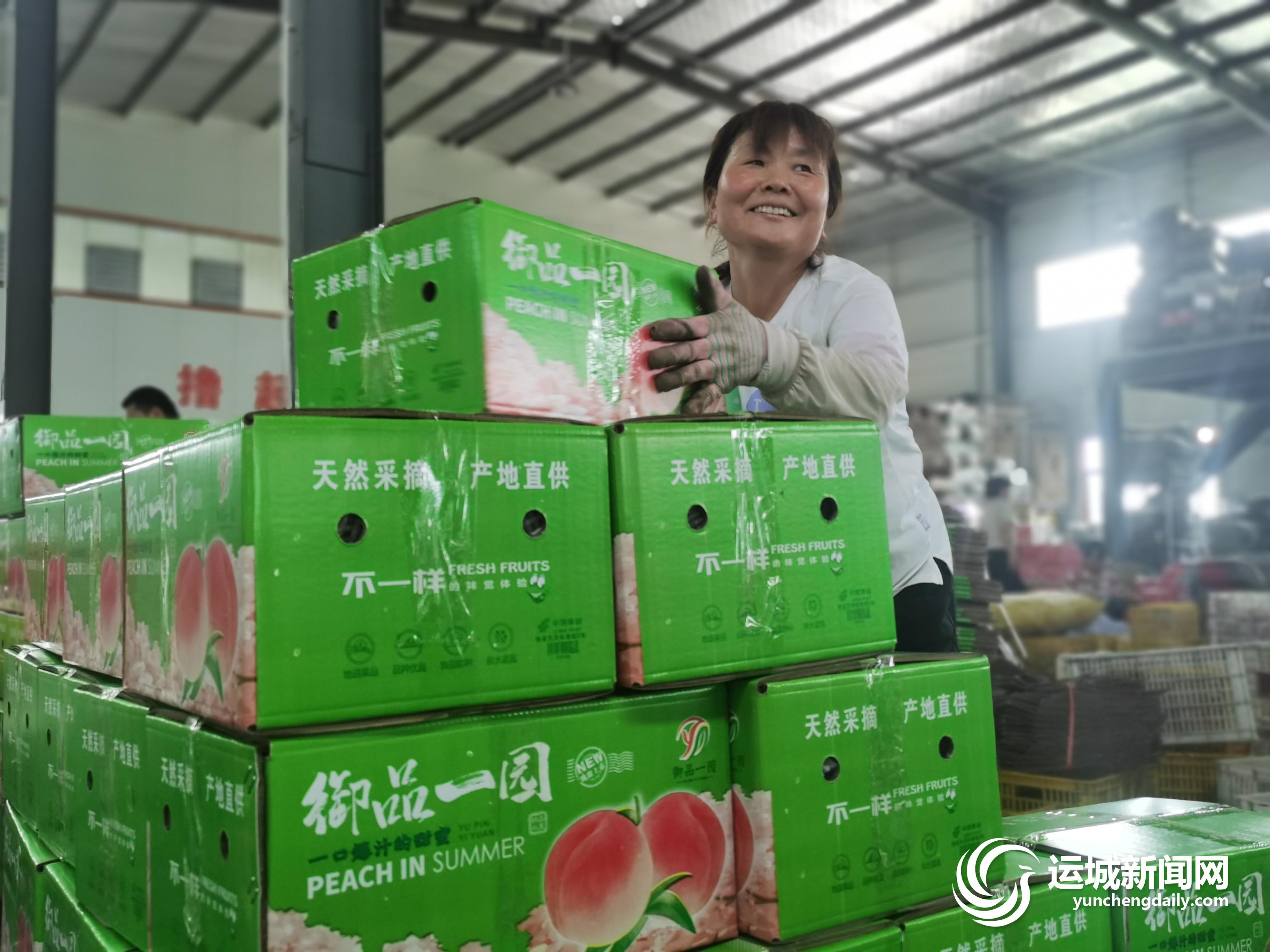 御品一园位于临猗县北辛乡义堂村,是运城乃至全省的果品电商销售龙头企业,去年销售额2.6亿余元。眼下,该公司的包装车间内一派忙碌的景象。桃、梨、葡萄等水果被分门别类地装入包装箱里,发往全国各地。