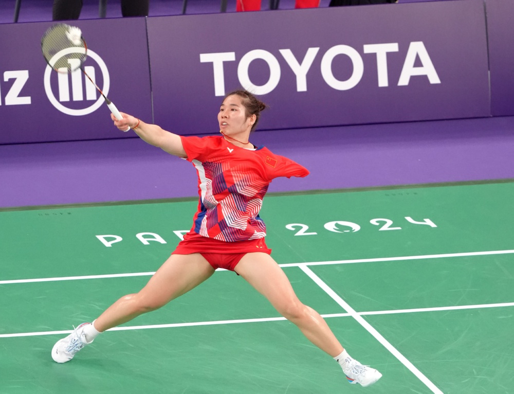 当日,在巴黎残奥会羽毛球女子单打SU5级决赛中,中国选手杨秋霞2比0战胜印度选手穆鲁盖桑,夺得冠军。