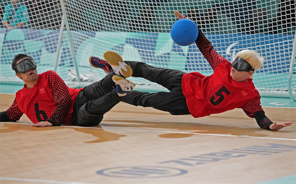 当日,在巴黎残奥会盲人门球男子四分之一决赛中,中国队12比2战胜法国队,晋级半决赛。