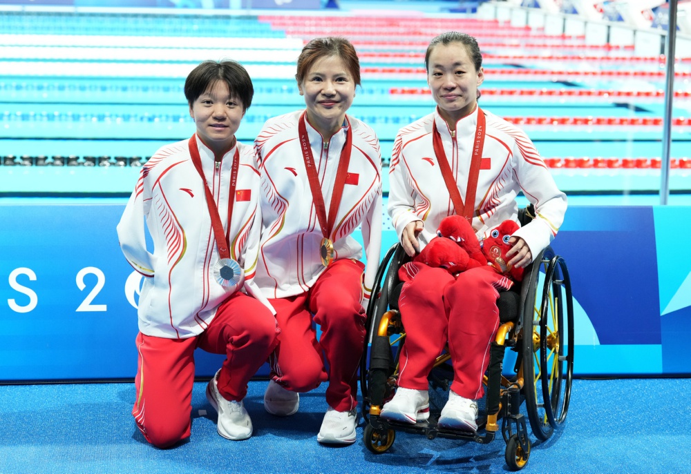 当日,在巴黎残奥会游泳女子50米仰泳S5级决赛中,中国选手卢冬、何聖羔、刘玉包揽冠亚季军。