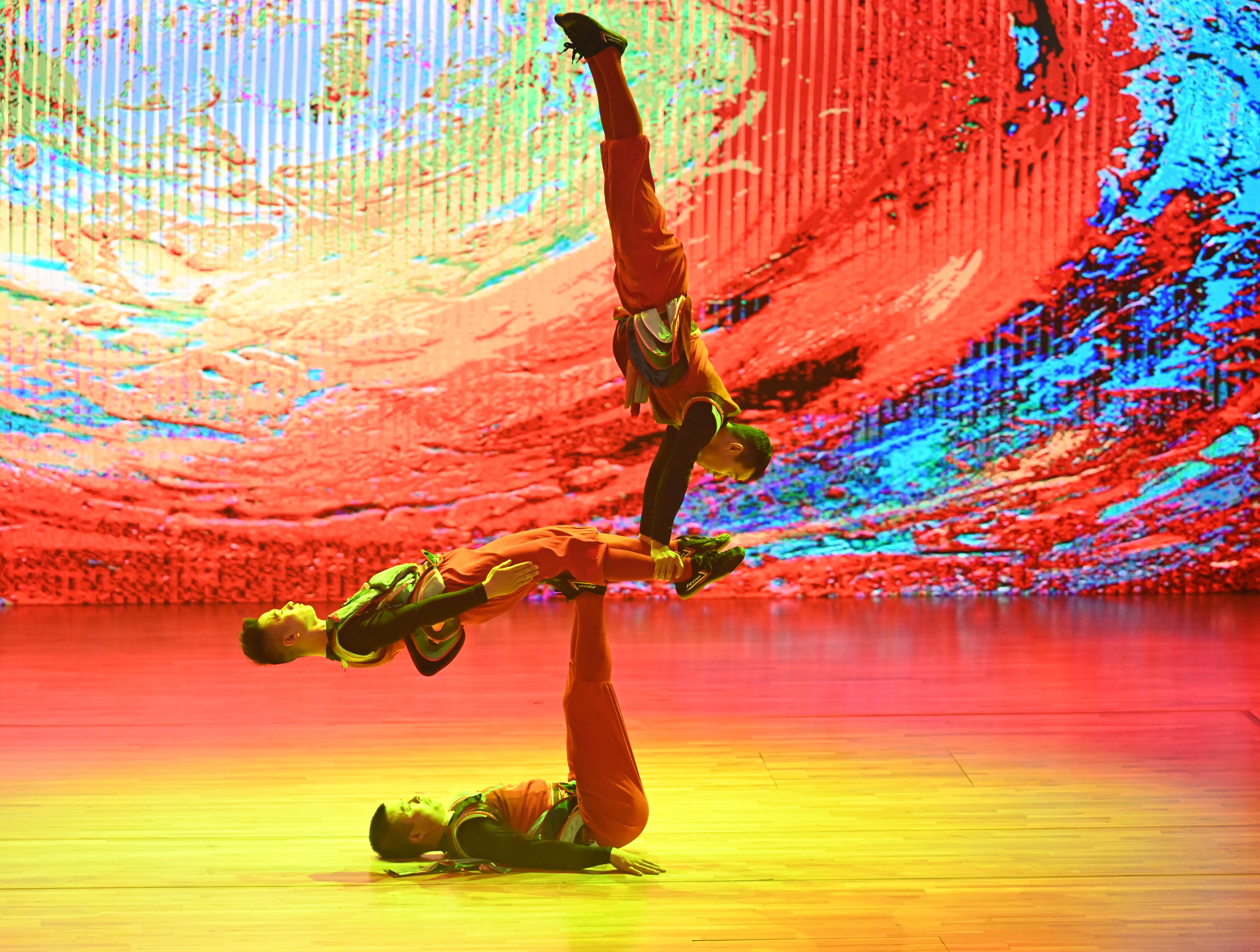 9月3日,演员在科威特艾哈迈迪省举行的“天涯共此时·湘约中东”文艺演出活动上表演杂技。