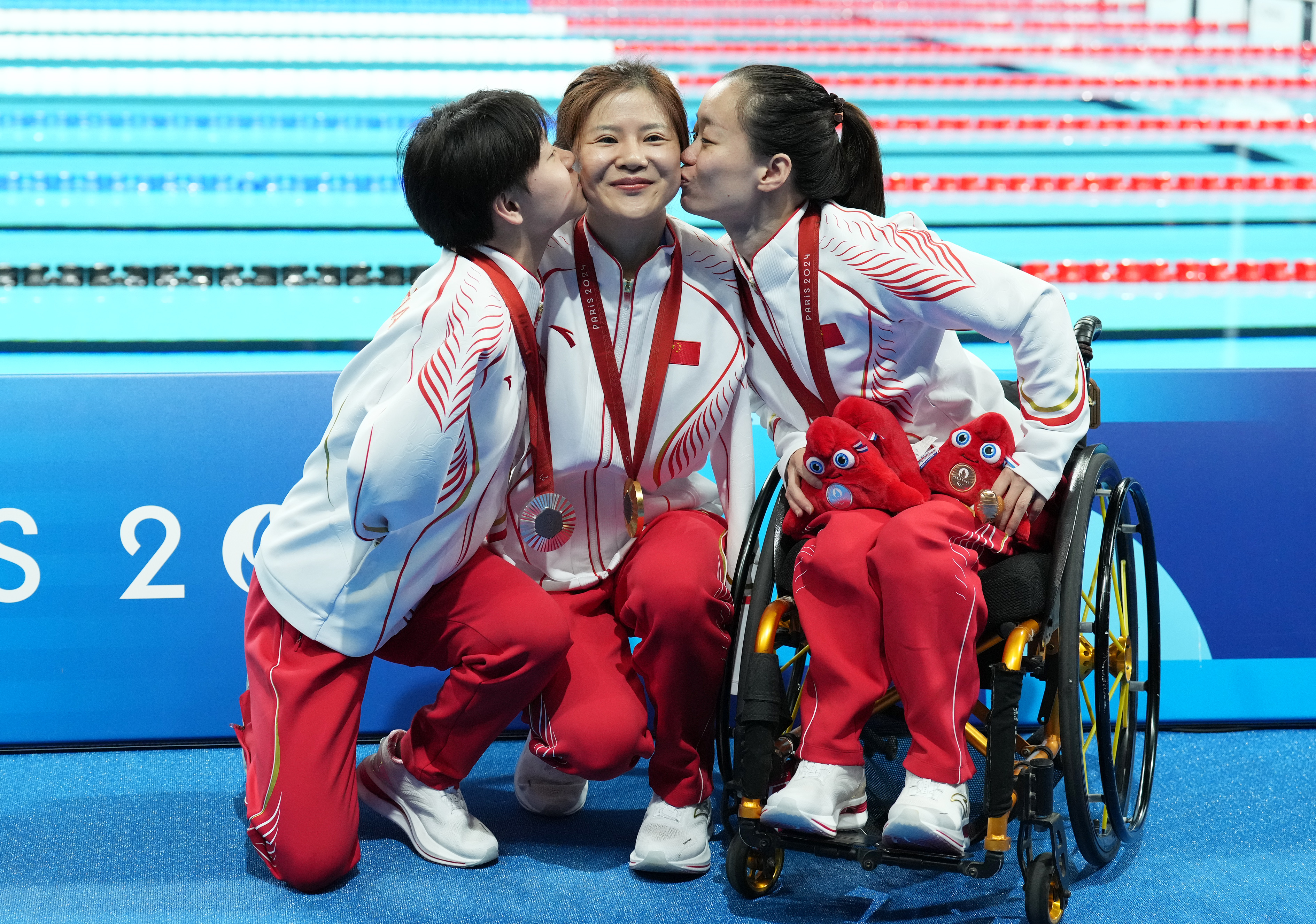当日,在巴黎残奥会游泳女子50米仰泳S5级决赛中,中国选手卢冬、何聖羔、刘玉包揽冠亚季军。