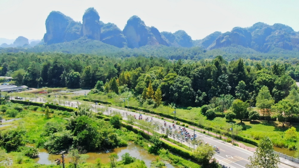当日,第十二届环鄱阳湖国际自行车大赛第四赛段比赛在江西省鹰潭市龙虎山风景名胜区举行。