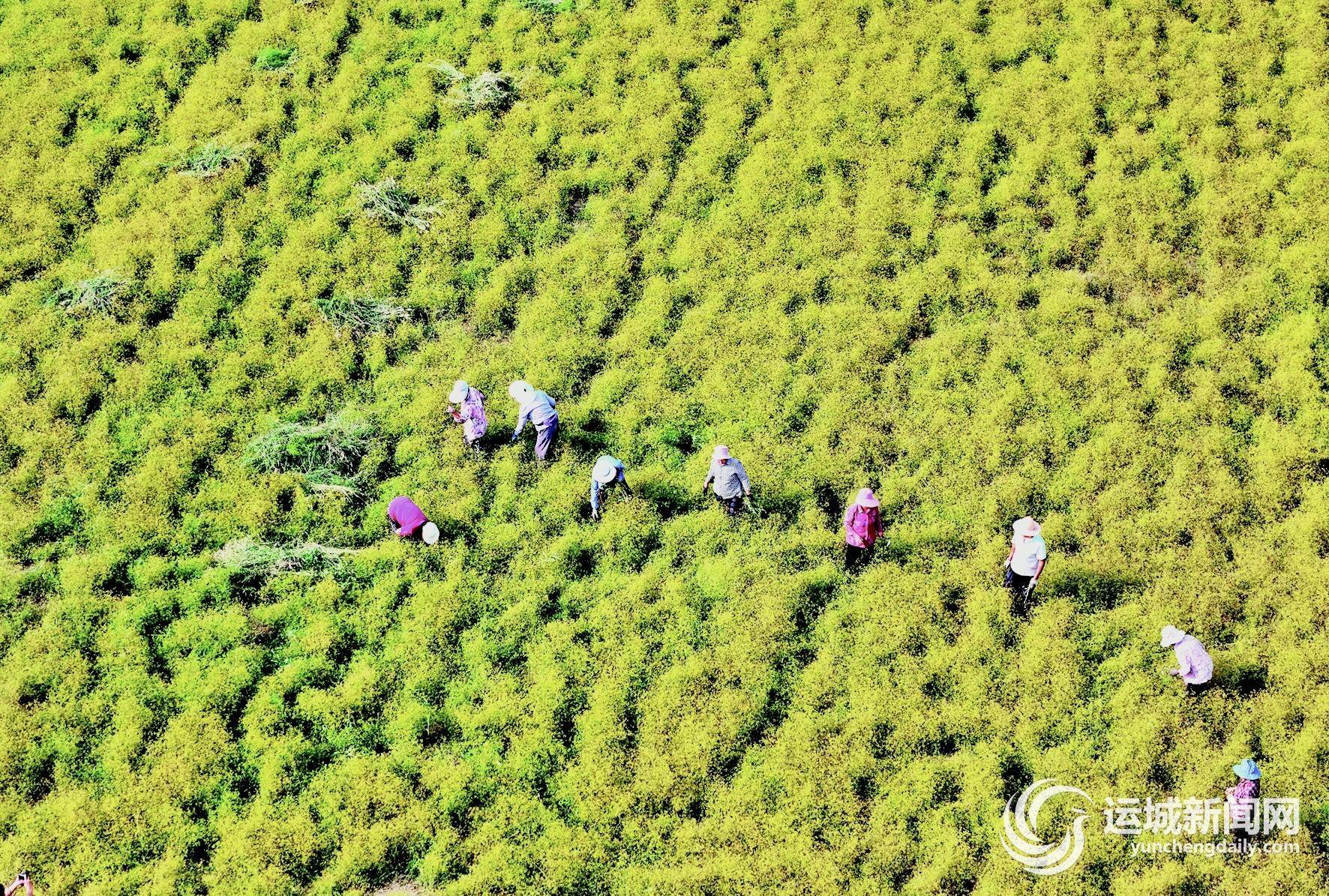 9月6日,在万荣县西村乡聚善村柴胡地里,村民在采收柴胡籽。西村乡积极引导群众发展中药材种植产业,有效促进农业增效和农民增收。 特约摄影 张怀心 摄