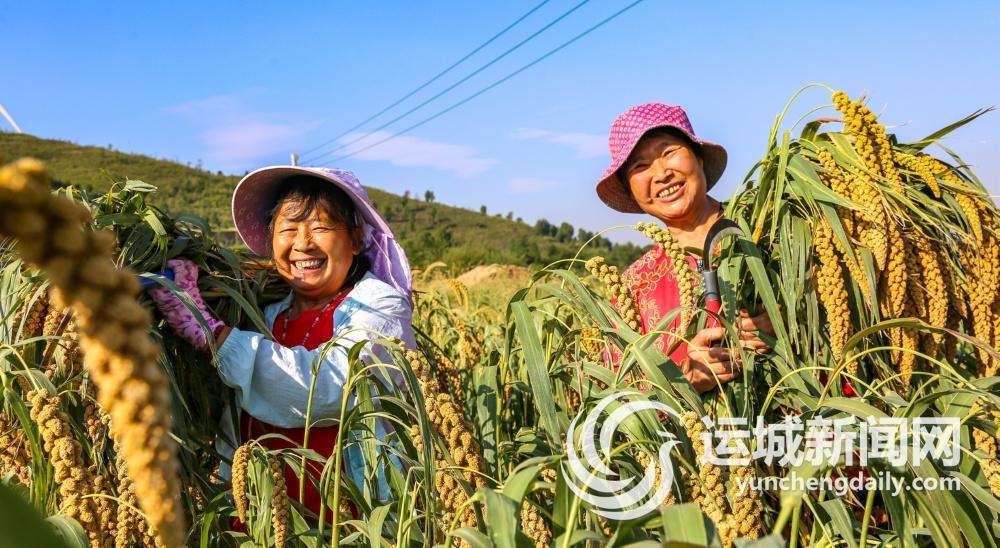 9月12日,夏县南大里乡南郭村,村民正在收谷子。