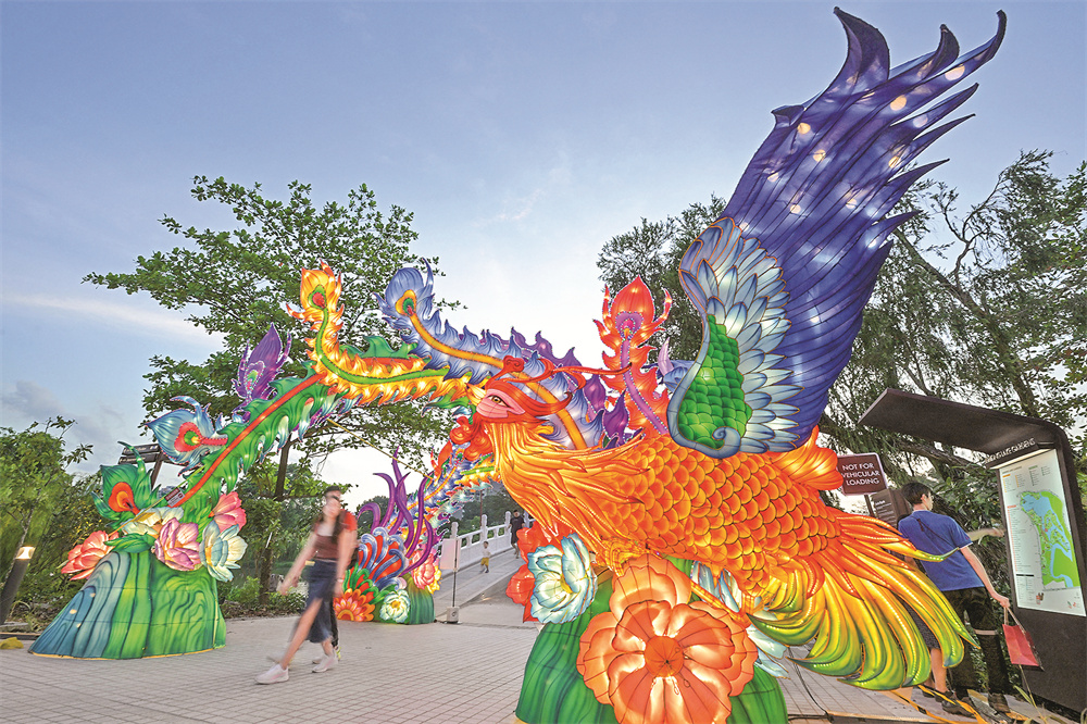 9月16日,人们在新加坡裕廊湖花园举行的中秋灯会上游玩。当日,众多民众来到新加坡裕廊湖花园观赏中秋灯会。新华社发