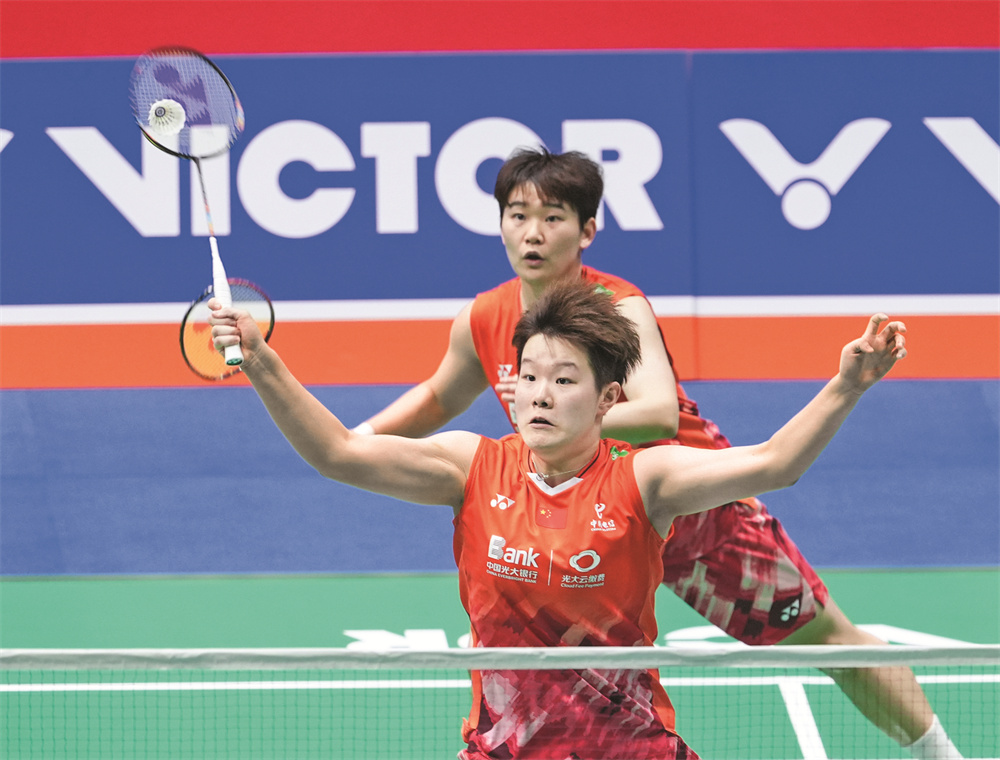 当日,在江苏省常州市举行的2024中国羽毛球公开赛女子双打第二轮比赛中,中国组合刘圣书/谭宁2比0战胜中国香港组合杨雅婷/杨霈霖,晋级八强。