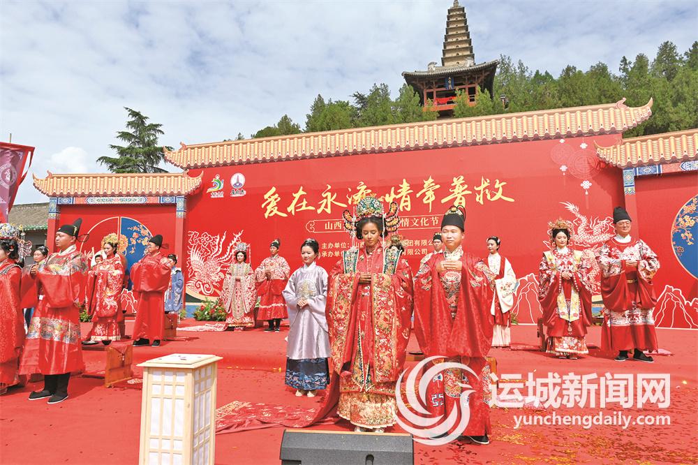 9月21日,山西永济第26届爱情文化节开幕,来自省内外的众多游客观看了精彩的文艺演出和传统汉式集体婚礼。 特约摄影 刘宝成 摄