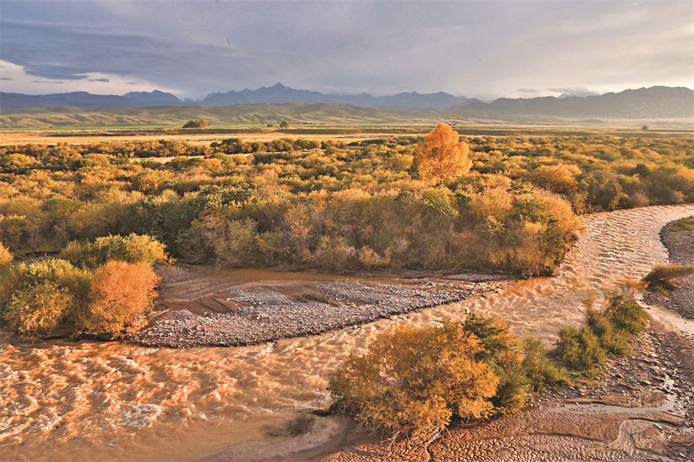 9月22日拍摄的甘肃省张掖市肃南裕固族自治县夏日塔拉草原秋色。时下,秋色斑斓,构成一幅幅美不胜收的秋日画卷。