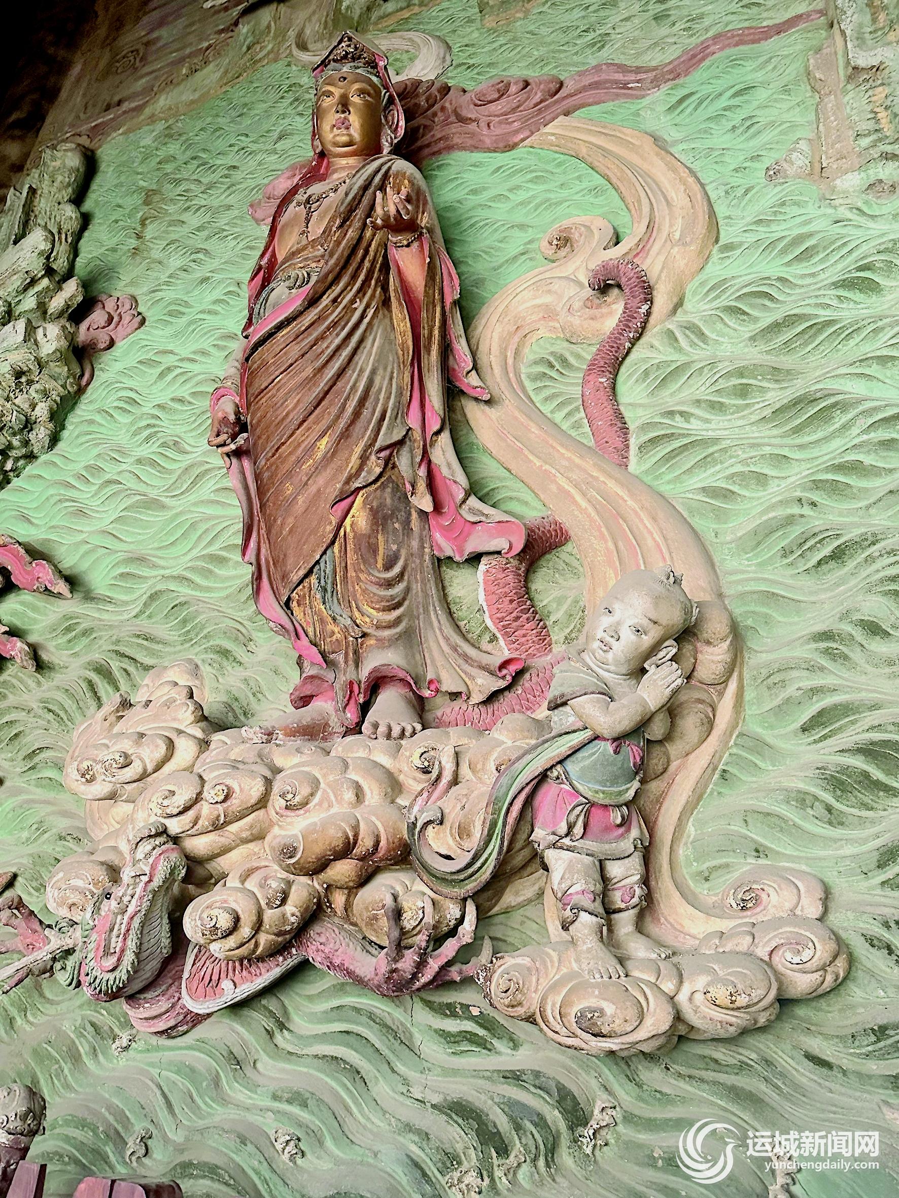 沿着石板路缓缓前行,目光被那些精美的彩塑牢牢吸引。寺内保存的彩塑具有极高的艺术价值和研究意义,体现了元代佛教彩塑和明代佛教彩塑的典型特点。它们形态各异,栩栩如生,尤其是那尊被誉为“中国最美菩萨”的渡海观音,更是让人叹为观止。她的眼神中透露出无尽的慈悲与智慧,站在她面前,我心中涌动着莫名的感动,所有的烦恼仿佛都被这温柔的目光化解。她不仅是一件艺术品,更是精神的寄托,用她那温柔且坚定的目光,给予每一个仰望她的人以力量与安慰。