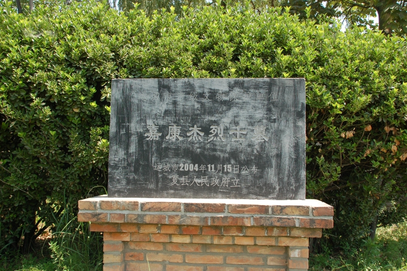 嘉康杰烈士墓夏县胡张乡其毋村北500米处。坐北朝南,南北长99米,东西宽28.5,分布面积为2821.5平方米。嘉康杰(1880年—1939年),字寄尘,夏县胡张乡其毋村人,1927年加入中国共产党,先后担任中共河东特委书记、中共河东中心县委书记、中共晋豫地委委员、晋豫边区八路军抗日游击第六队队长等职务。1939年选为中共“七大”候补代表,在赴平陆中心县委参加会议途中遭国民党特务暗杀,葬于韩家岭,1959年迁于葬此地。墓塚为圆形,高约1.7米,周围种有迎春花。墓前为夏县人民政府立的汉白玉纪念碑,墓地前建有广场,中部设纪念亭内塑嘉康杰像。1985年,县政府公布为县级文物保护单位。1999年,县政府重新公布为重点文物保护单位。2004年运城市人民政府公布为市级文物保护单位。2016年6月6日被省政府公布为第五批省级文物保护单位。