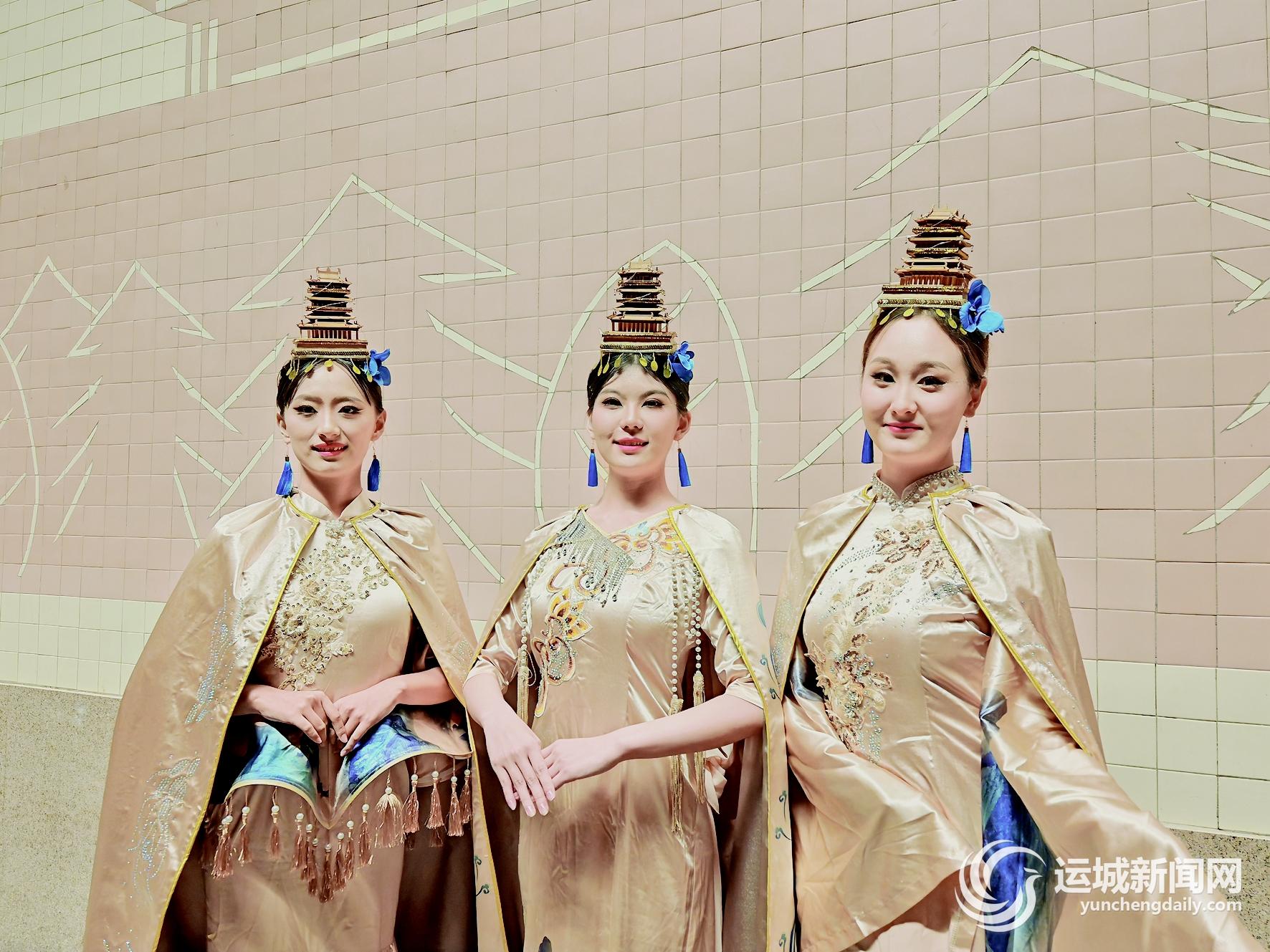 佩戴这款头饰的演员们在舞台上翩翩起舞,仿佛将观众带入了诗人王之涣笔下的鹳雀楼。表演者侯皖容介绍,它不仅是一款精美的头饰,更是一件别致的艺术品,代表了当地的文化传承和人们对鹳雀楼的深厚情感。表演者秦小雨则表示:“希望有更多的人能看到我们永济独特的历史文化,到我们永济来看一看。” 记者 杨洋 文/图