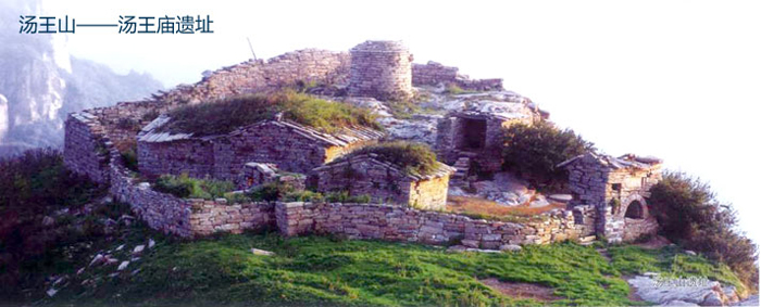 汤王山又名景山,海拔1752米,位于中条山中南部的天然生态乡——石门,汤王山是商汤文化、晋郭璞勘舆文化的发祥地,公元前1711年成汤经7年的休养生息,终于在此活捉夏桀并建立了商朝,后来人们在此建庙祭祀并改景山为汤王山,成为我国唯一的一座以尧舜禹汤四大贤君之一商汤命名的山峰。