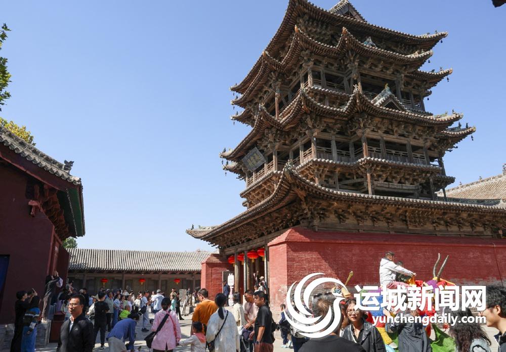 魅力盐湖游人如织、关帝祖庙祈福纳祥、鹳雀楼上登高望远、飞云楼前打卡国宝、“悟空”元素激活古建……
