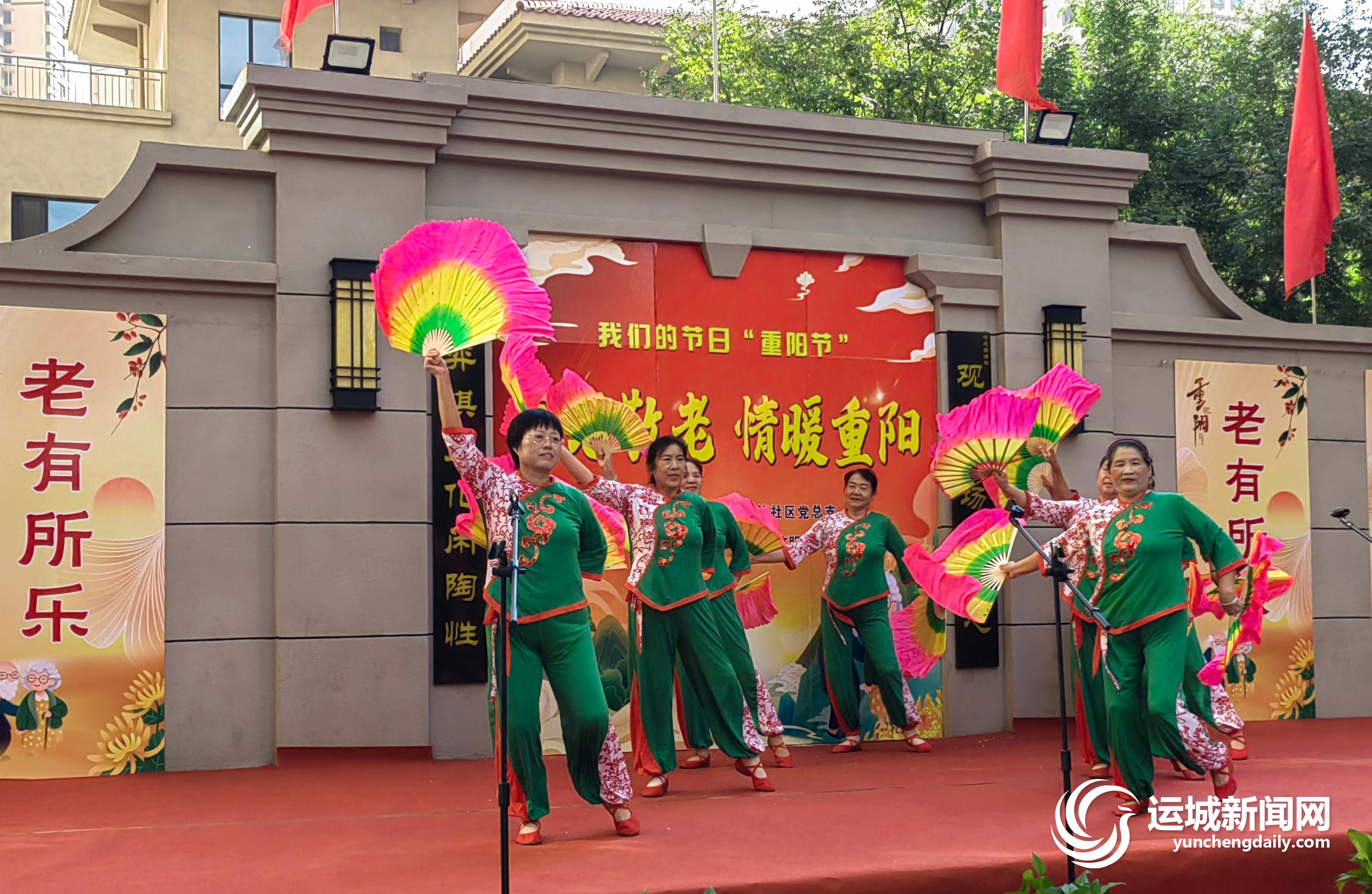 10月10日,盐湖区安邑街道金海湾社区新时代文明实践站在金海湾小区举办九九重阳节活动,辖区的老年人享美食、看演出,喜迎重阳节的到来。