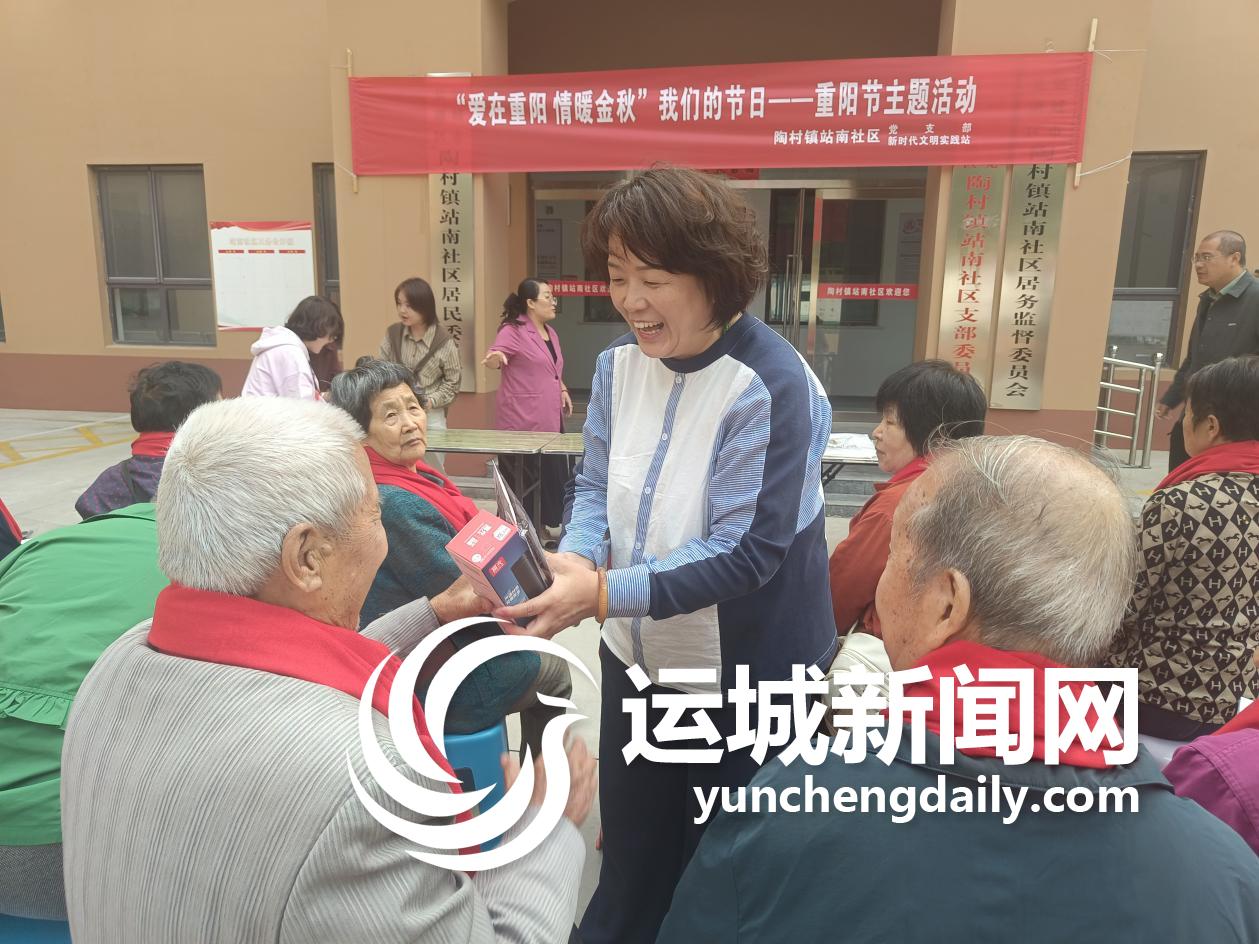 10月9日,盐湖区陶村镇站南社区举办了健康讲座,并为辖区的老年人赠送了节日礼品。