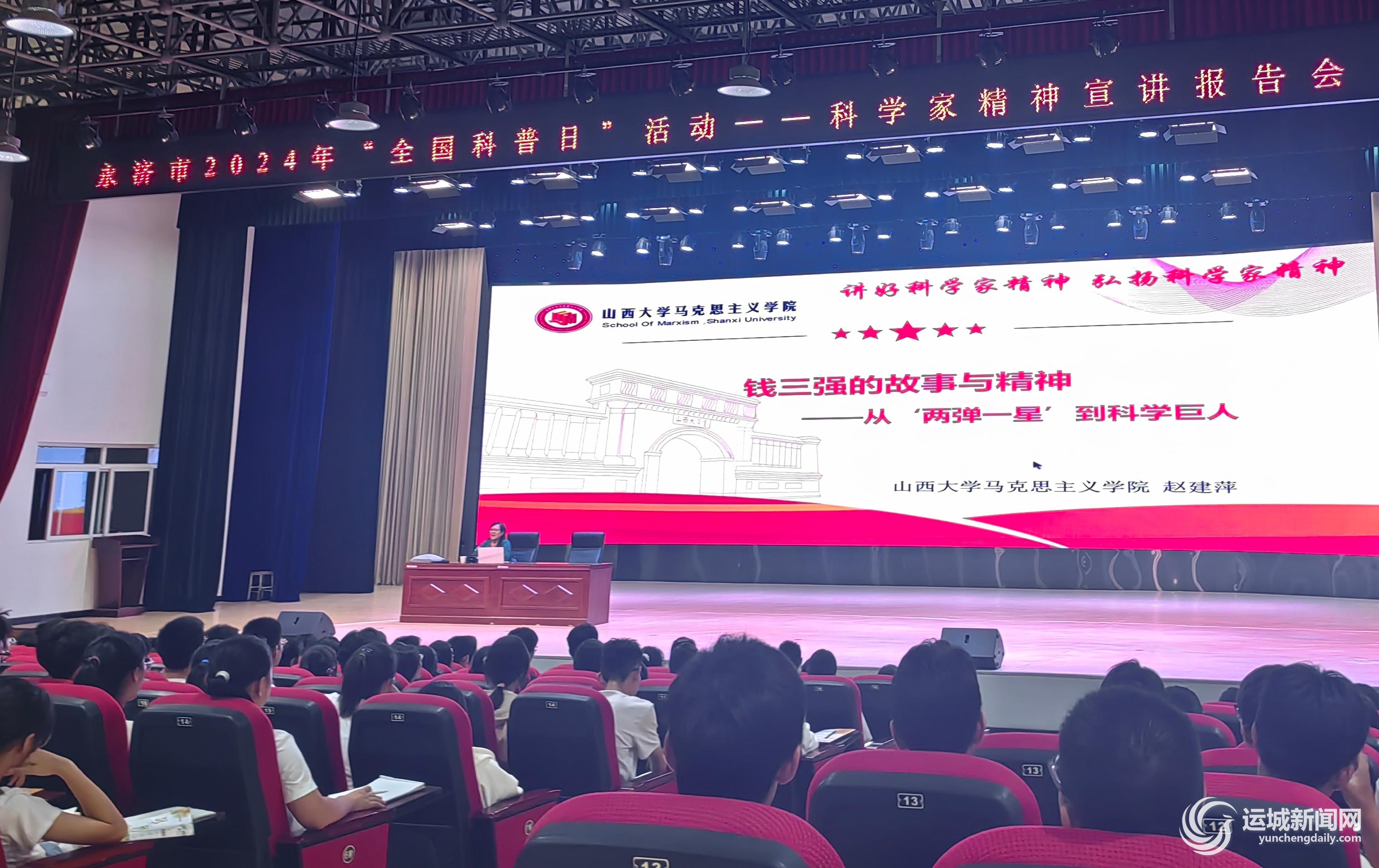 9月27日下午,在永济三中大礼堂,一场600名师生参加的讲座正在进行,主讲的专家为山西大学马克思主义学院教授赵建萍。在两个小时的讲座中,赵建萍给同学们生动讲述了我国著名核物理学家、中国原子能科学事业的创始人钱三强从“两弹一星”科技专家到科学巨人的故事,为该校高一全体师生进行科学家精神宣讲,引导大家树立家国情怀、厚植科学文化,上了一堂精彩的思政课。