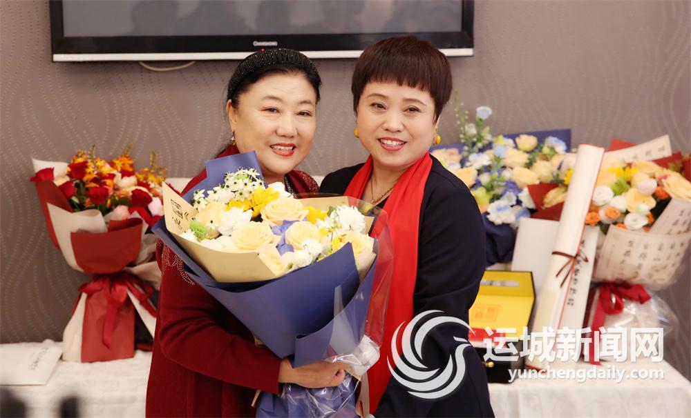 现场,著名画家韩周太以巨幅《寒梅图》祝贺,著名作家冯建国、赵含民以“师拜俊英”条幅,著名书法家原旭东以“桃李芬芳”条幅表示祝贺。戏迷韩希民从崇公道“你有名,他有号”,唱到“苏三离了洪洞县”,别有一番情韵。