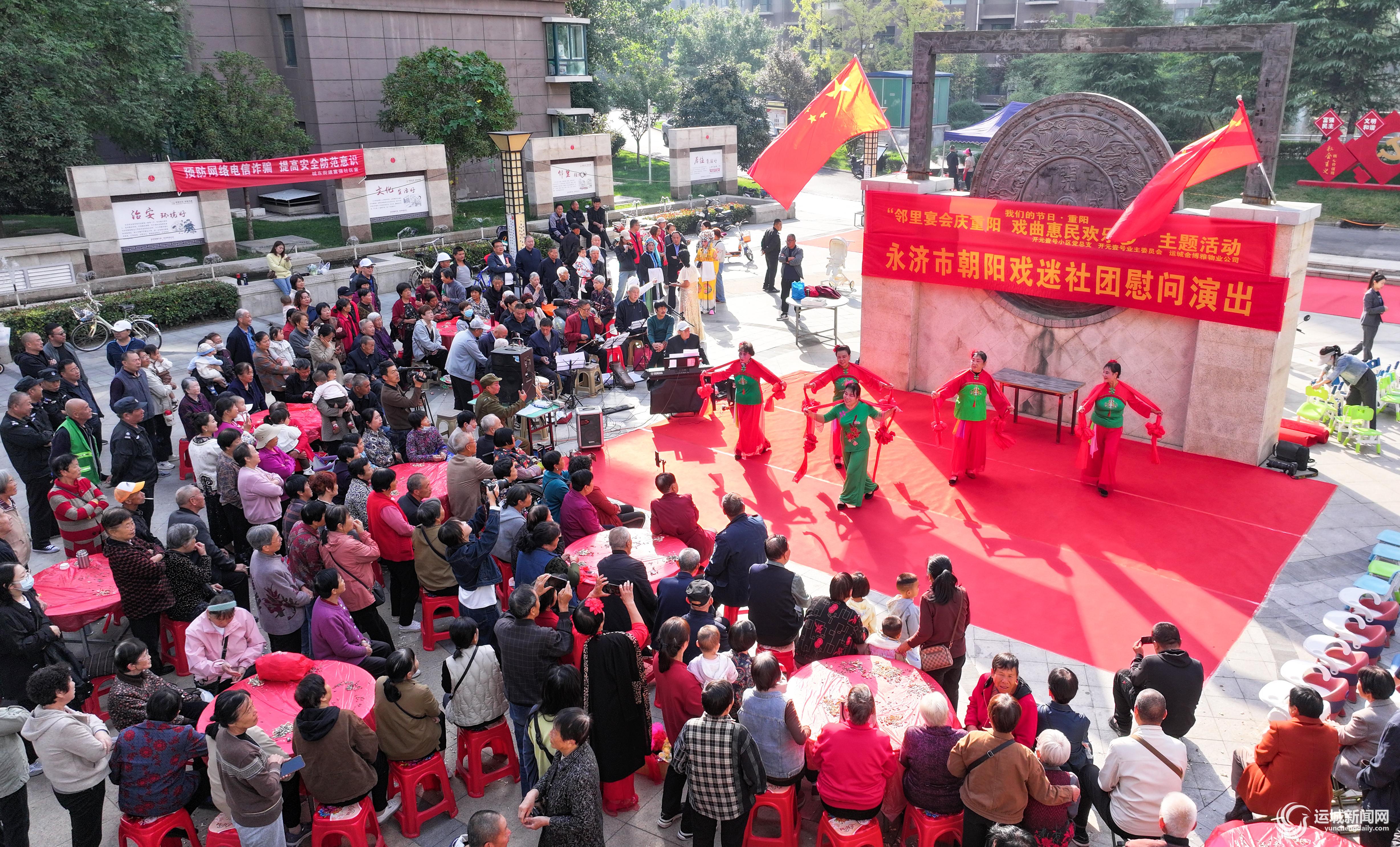 10月11日,重阳节当日,在永济市城东街道富强社区开元壹号小区,业主委员会联合物业公司组织开展敬老孝老活动。志愿者们为老年人开展理发、义诊、表演节目等志愿服务,营造了爱老、尊老、敬老的社会氛围。