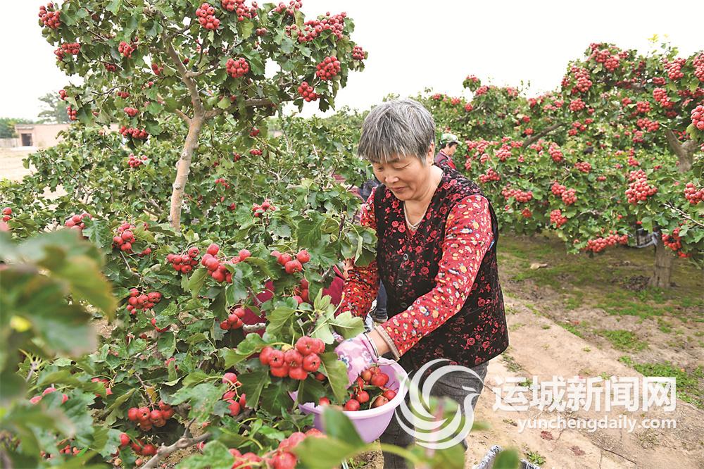 10月12日,稷山县太阳乡小阳村村民在田间采收富硒山楂。