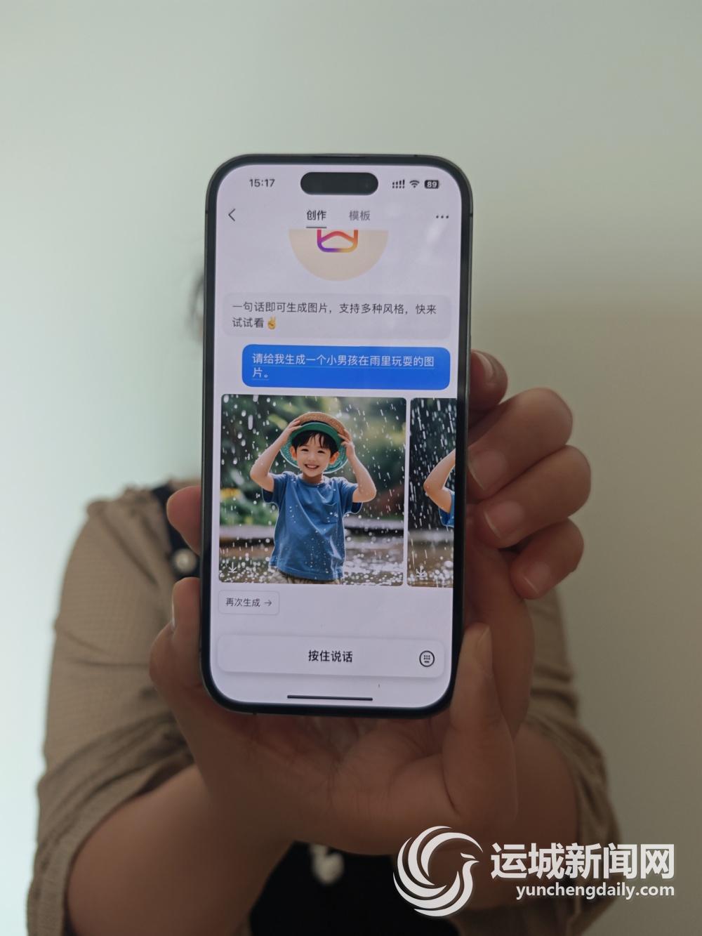 扆女士还经常用“豆包”来“生成图片”:“比如我们做PPT的时候经常要插图,觉得找图太麻烦,就让‘豆包’生成一个。”说完,她开始演示,找到“AI图片生成”,输入“请生成一个小男孩在雨里玩耍的图片”,3秒后——